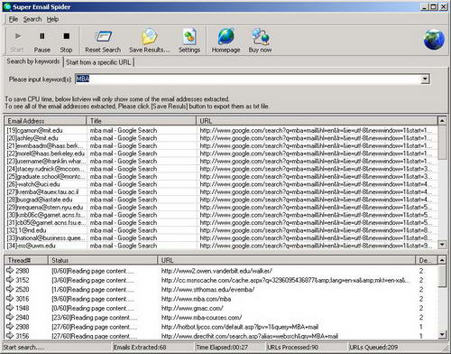 軟體簡介:Super Email Spider能夠使用web快速可靠的建立電子郵件列表,它能夠根據指定