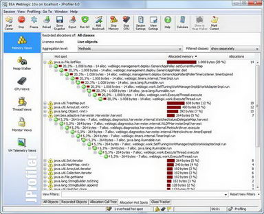 JProfiler的GUI可以讓你方便的找到效能瓶頸、記憶體洩漏(memory leaks)、